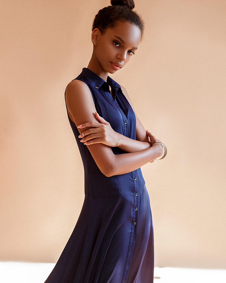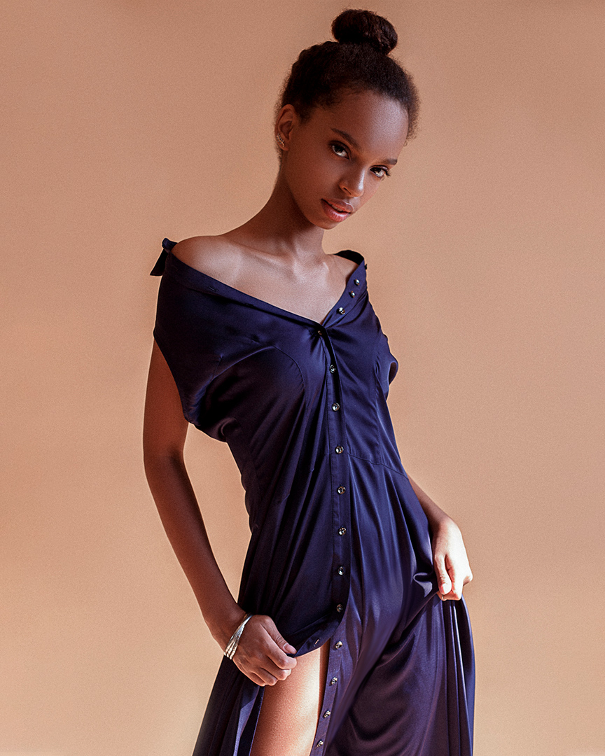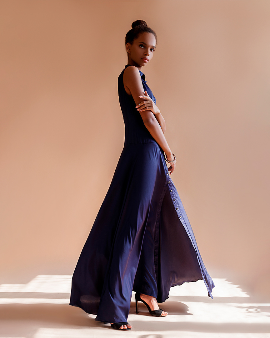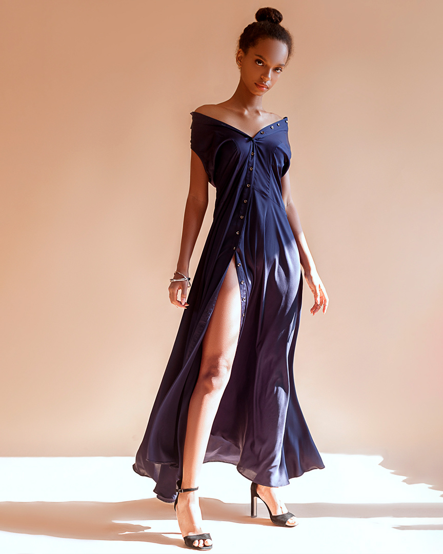 сукня - сорочка в підлогу сатинова синя