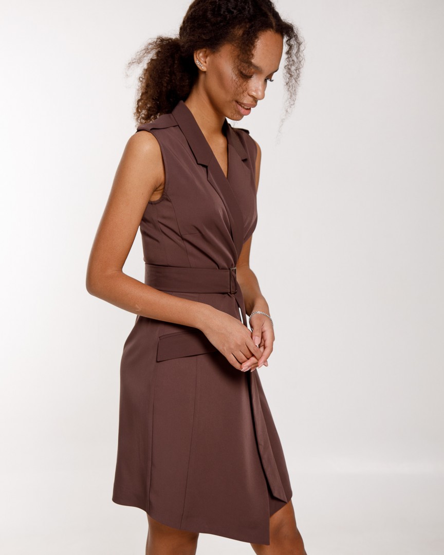сукня-піджак з погонами без рукава шоколад