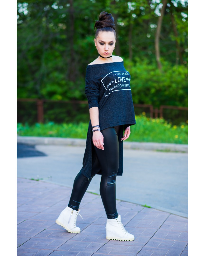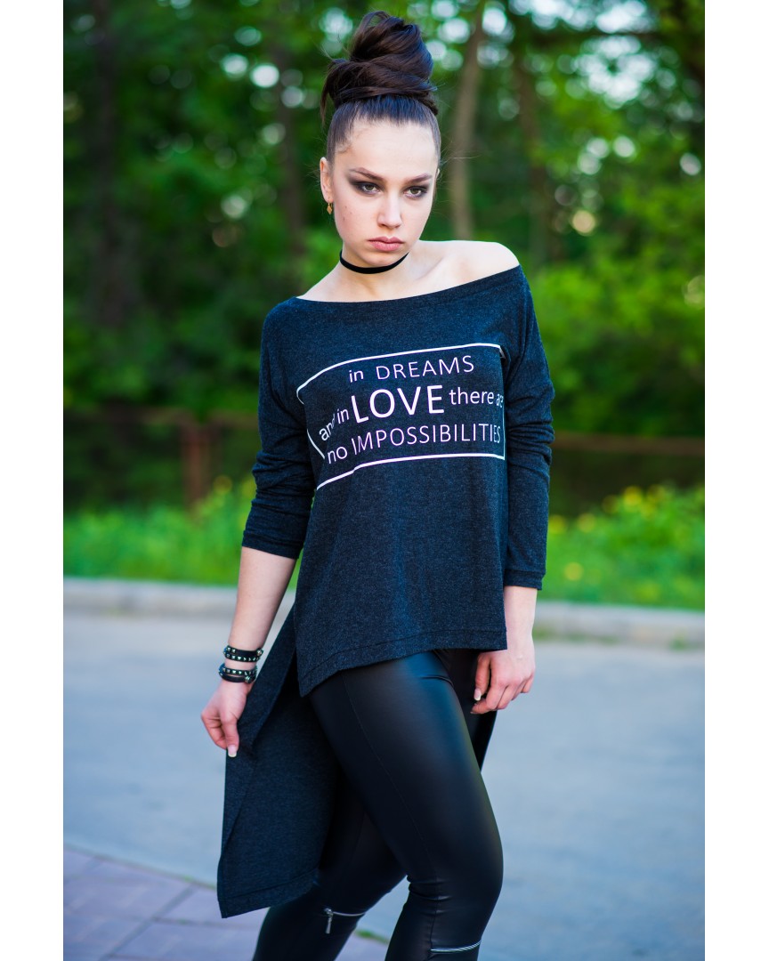 туніка ангорова з принтом темно-синя