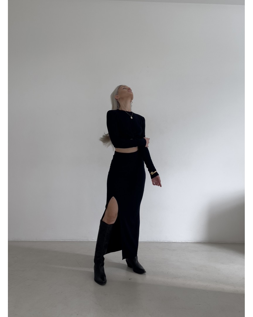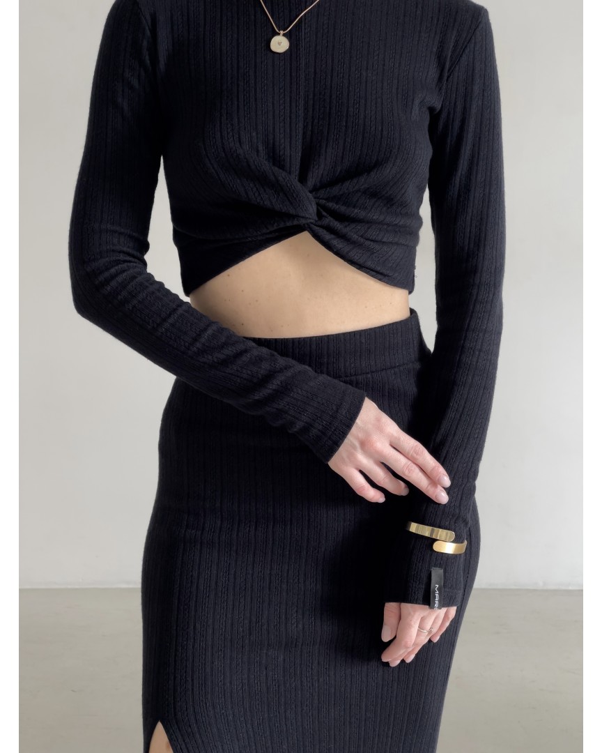 топ з вузлом чорний жакардовий